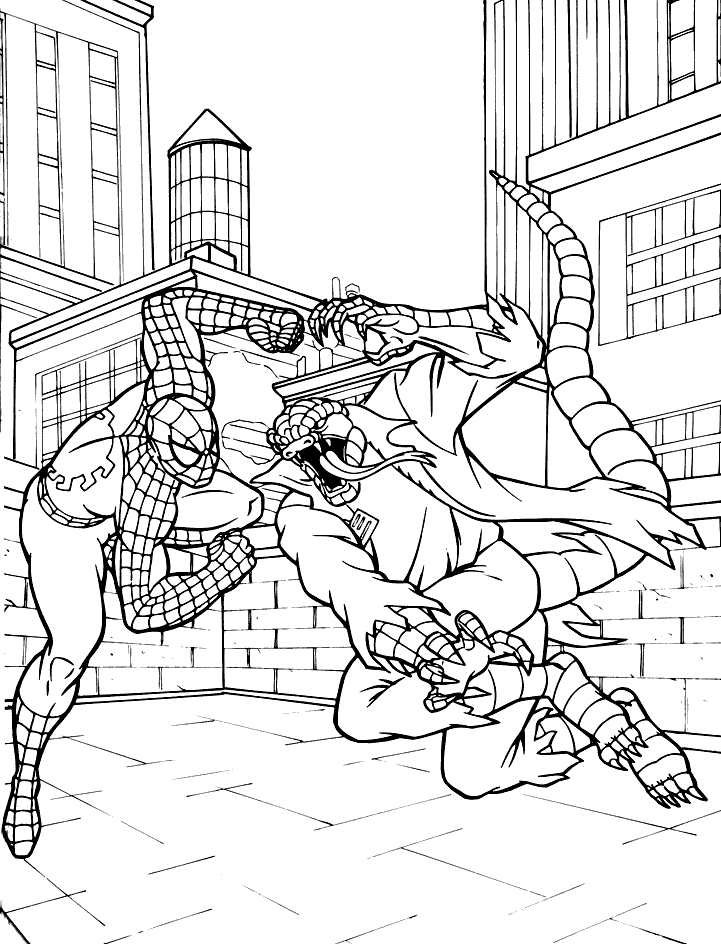 Spiderman vs Venom Coloring Pages,Frightening Fight on the Roof Betweet Spiderman and Venom - Spiderman Vs Venom Coloring Pages